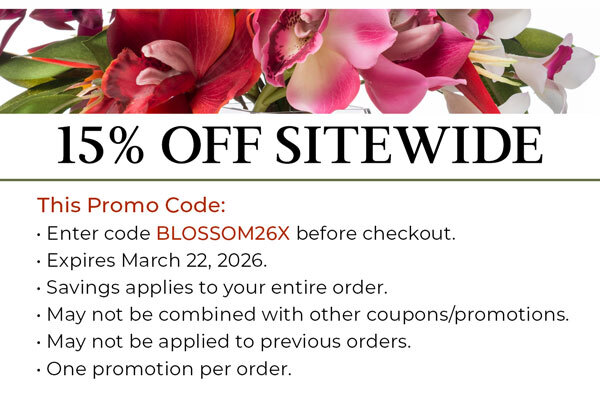 Tropical decorating made easy with lifelike 29" faux heliconia stems. Available in two colors. 12 stems shown in photo and arranged in our 12" cylinder vase with clear gems (sold seperately)